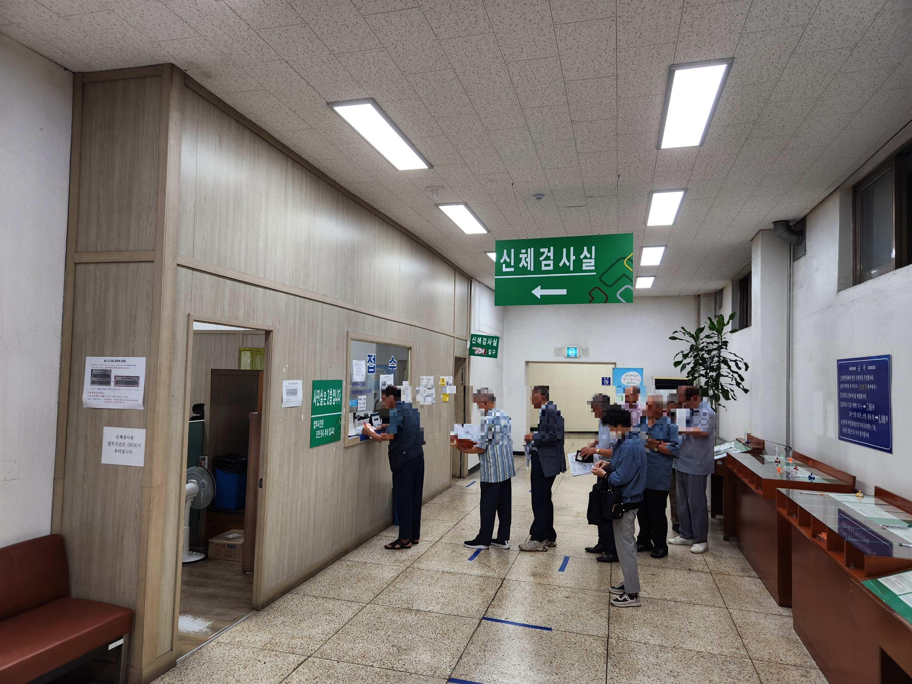 처음 방문하면 신체검사를 진행해야 한다. 국가건강검진을 받았다면 시력검사는 패스하며, 신체검사비 6,000원을 내야한다.