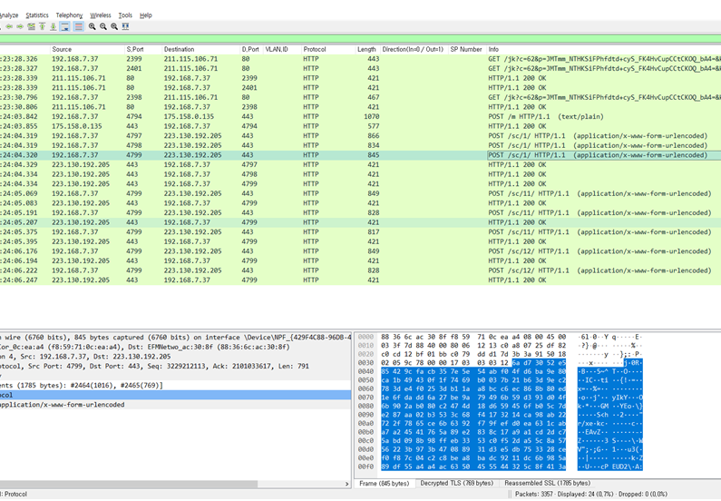 복호화된 SSL 트래픽 샘플화면