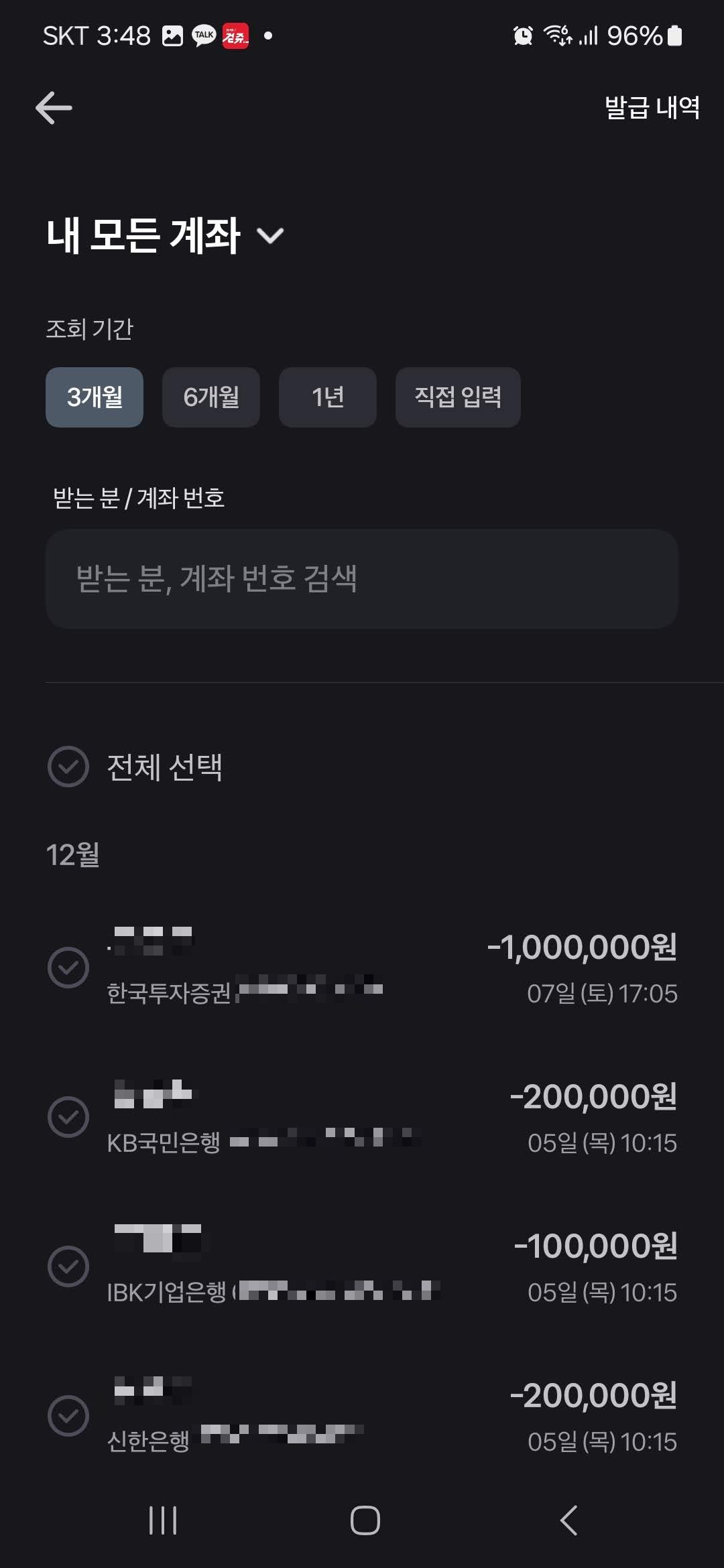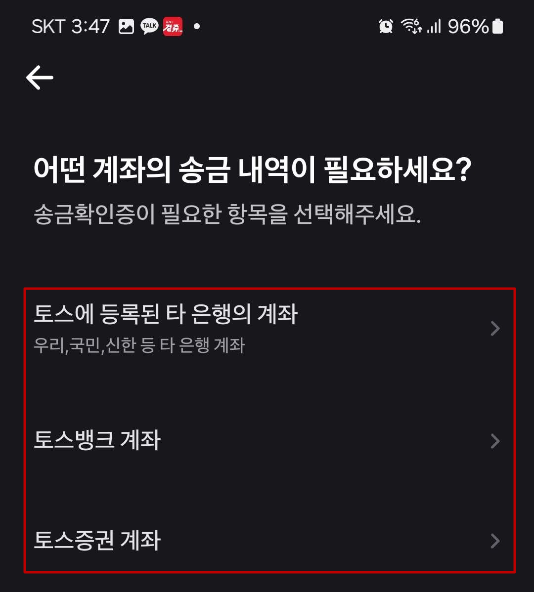 3. 송금확인증(이체확인증) 확인이 필요한 계좌 확인