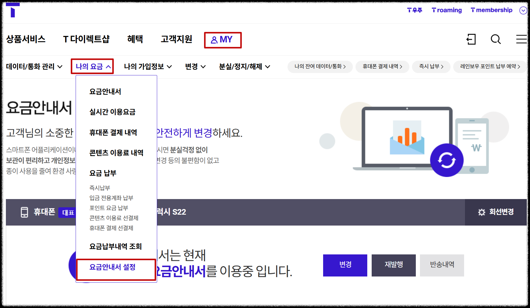 2. 청구서 수신방법 변경