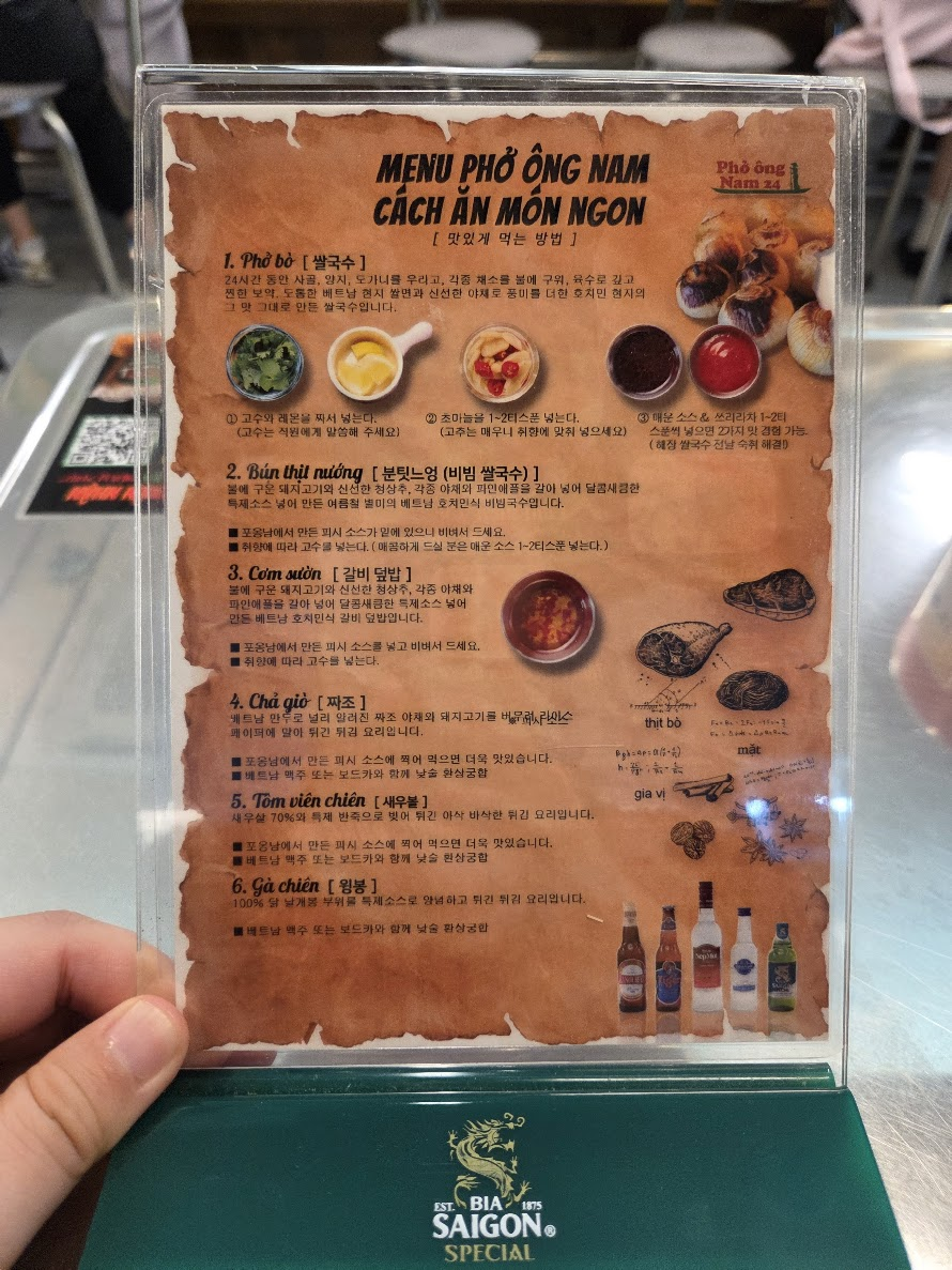 석촌호수 서호에 위치한 베트남 쌀국수 전문점. 333번 버스를 타고 "석촌호수서호 사거리"에서 내리면 빠르게 갈 수 있음.