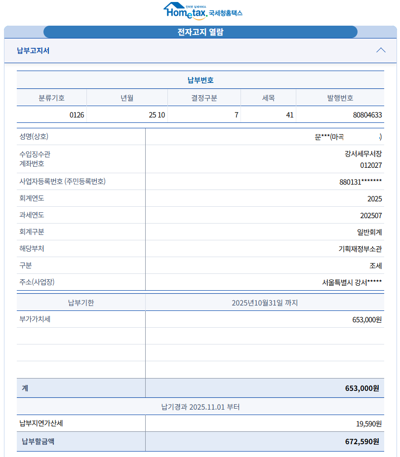 매년 1월,4월,7월,10월은 부가가치세를 납부하는 달이며, 그중 4월,10월은 직전 부가가치세의 50%를 산출하여 예납한다. 이번 10월에 2025년 2기 부가가치세 예납하는 과정을 기록해본다.