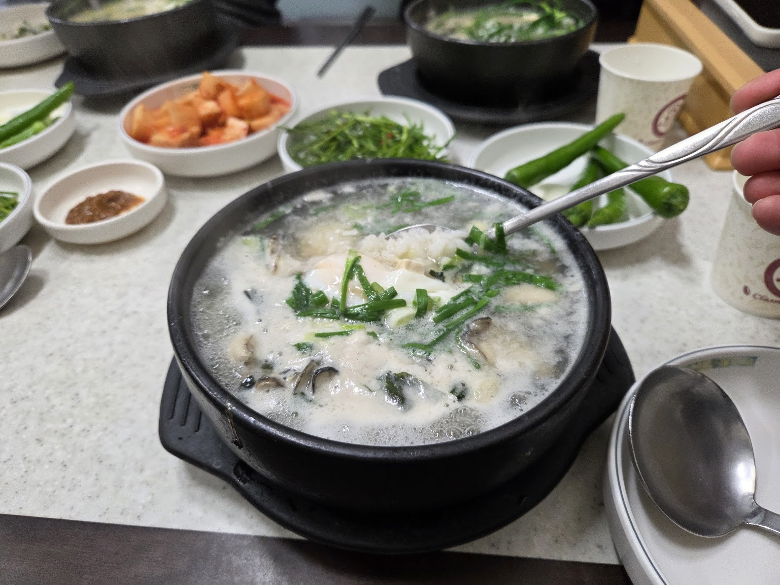 한국도심공항 길건너 도보로 약 5분거리에 위치한 굴국밥 전문점.