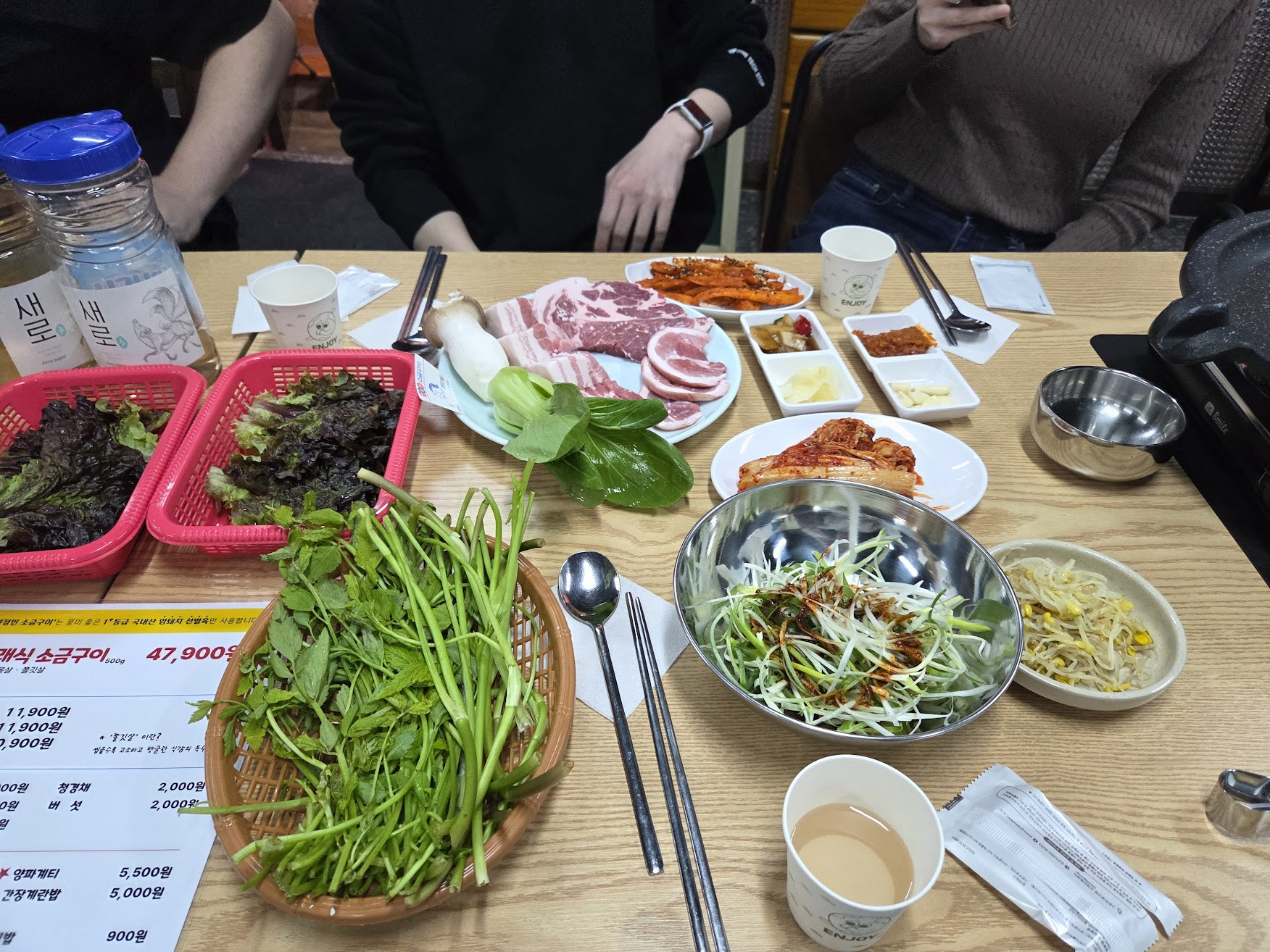 석촌호수 서호와 석촌고분역 사이 골목길에 위치한 소금구이 전문점. 레트로 감성의 인테리어와 신선한 고기질이 인상적.
