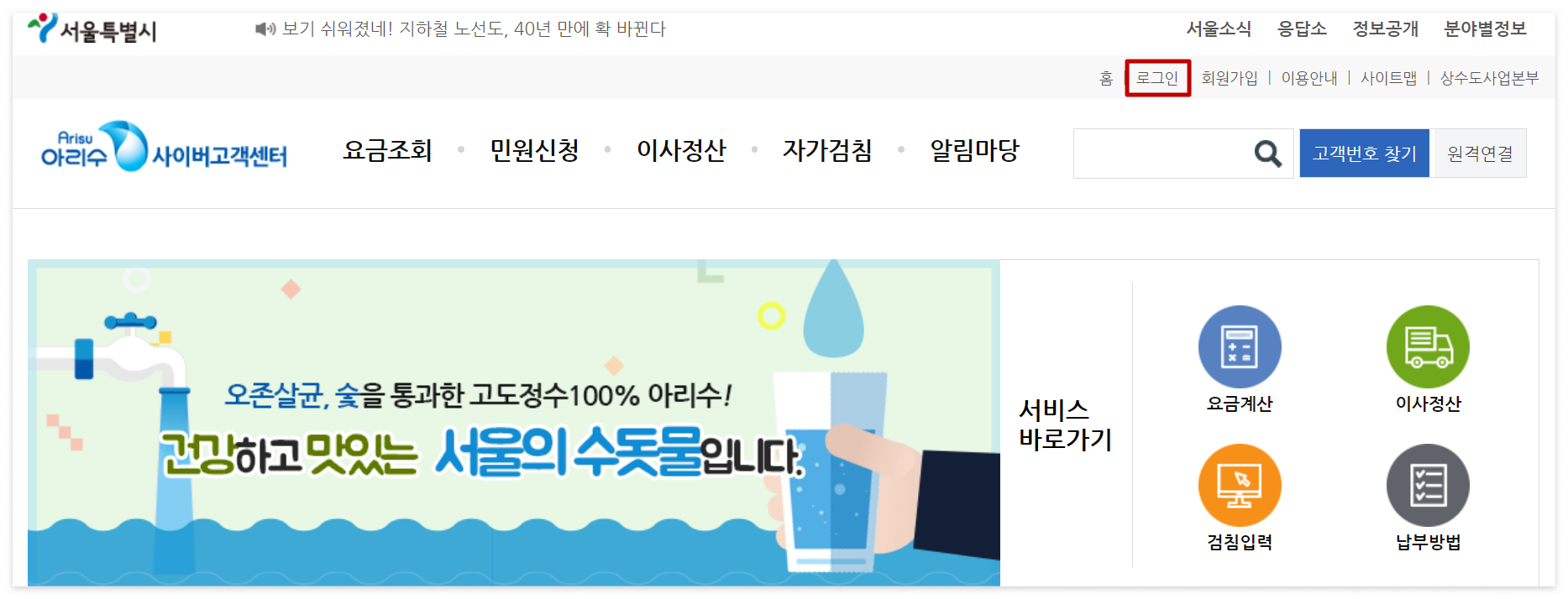 1. 아리수 사이버 고객센터에 로그인 (https://i121.seoul.go.kr/)